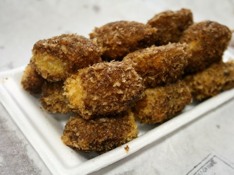 イモフライも名物で、持ち帰りの場合もソースをつけてもらったほうがベター。
